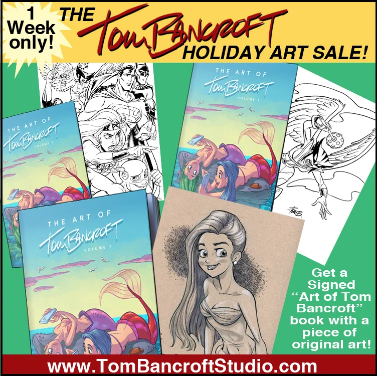 /This is my first time doing this, but I have gotten requests to try it. I hope you all didn't buy all your gifts already during Black Friday. So- I have TEN original art pieces I hand selected (all are favs of mine) that I will sell and place into a signed "Art of Tom Bancroft" hard cover book. I am trying to put very fair pricing on them too. Please look in my STORE for the selection and HAPPY HOLIDAYS!